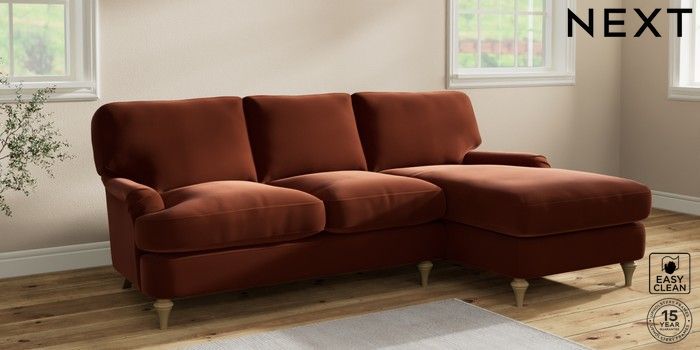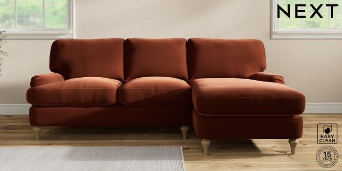 7.2.10 Sadie Deep Relaxed Sit Medium Sofa Chaise - Right Hand Plush Velvet Easy Clean Ginger Orange High Slim Turned - Light | Made Click here to use our website with more accessibility support, for example screen readers