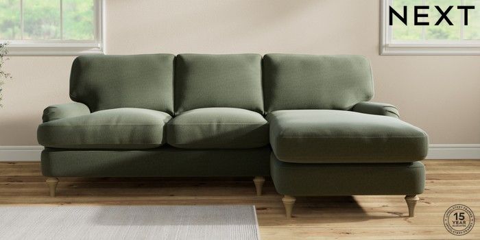 7.2.10 Sadie Deep Relaxed Sit Medium Sofa Chaise - Right Hand Relaxed Linen Look Dark Green High Slim Turned - Light | Made Click here to use our website with more accessibility support, for example screen readers