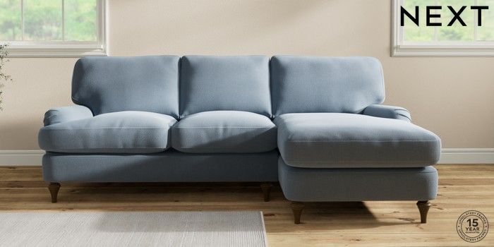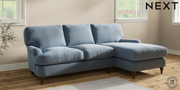 7.2.10 Sadie Deep Relaxed Sit Medium Sofa Chaise - Right Hand Relaxed Linen Look Mid Blue High Slim Turned - Mid | Made Click here to use our website with more accessibility support, for example screen readers