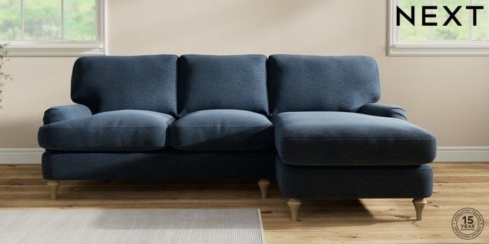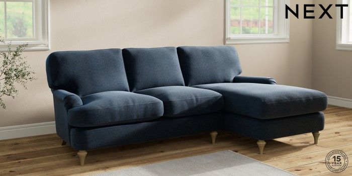 7.2.10 Sadie Deep Relaxed Sit Medium Sofa Chaise - Right Hand Ripple Chenille Dark Blue High Slim Turned - Light | Made Click here to use our website with more accessibility support, for example screen readers
