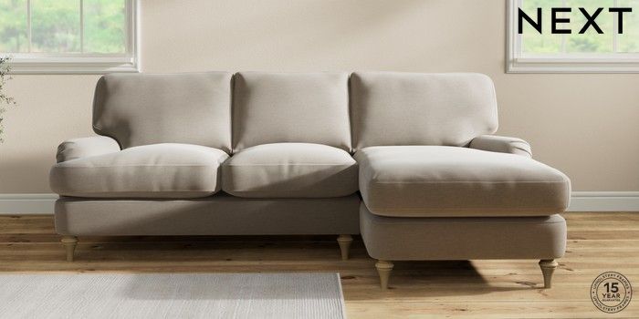 7.2.10 Sadie Deep Relaxed Sit Medium Sofa Chaise - Right Hand Ripple Chenille Light Natural High Slim Turned - Light | Made Click here to use our website with more accessibility support, for example screen readers