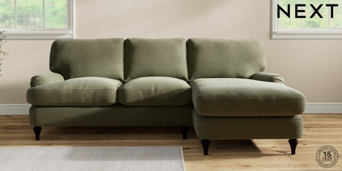 7.2.10 Sadie Deep Relaxed Sit Medium Sofa Chaise - Right Hand Ripple Chenille Mid Moss Green High Slim Turned - Dark | Made Click here to use our website with more accessibility support, for example screen readers