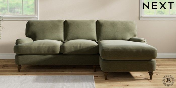 7.2.10 Sadie Deep Relaxed Sit Medium Sofa Chaise - Right Hand Ripple Chenille Mid Moss Green High Slim Turned - Mid | Made Click here to use our website with more accessibility support, for example screen readers