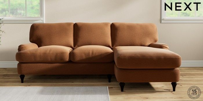 7.2.10 Sadie Deep Relaxed Sit Medium Sofa Chaise - Right Hand Ripple Chenille Mid Rust Brown High Slim Turned - Dark | Made Click here to use our website with more accessibility support, for example screen readers