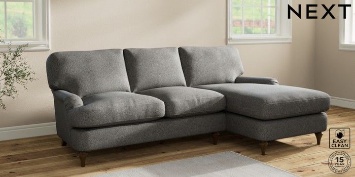 7.2.10 Sadie Deep Relaxed Sit Medium Sofa Chaise - Right Hand Tweedy Blend Easy Clean Dark Grey High Slim Turned - Mid | Made Click here to use our website with more accessibility support, for example screen readers