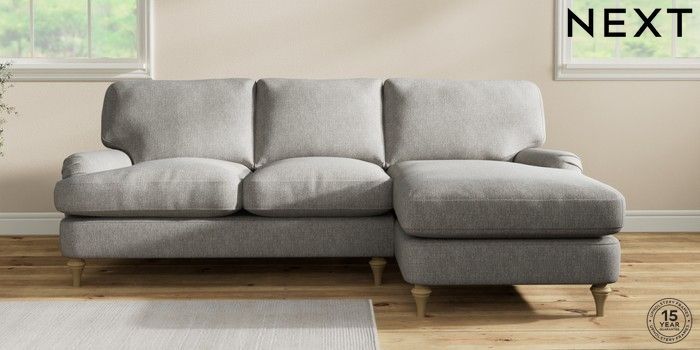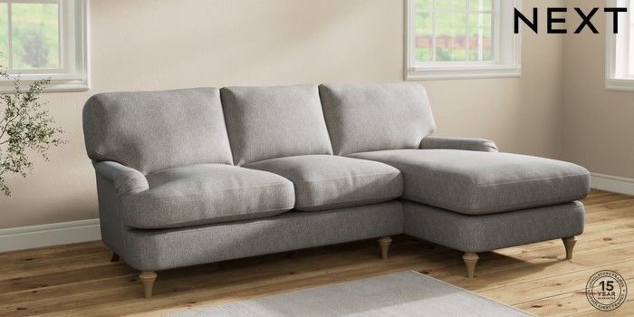 7.2.10 Sadie Deep Relaxed Sit Medium Sofa Chaise - Right Hand Tweedy Chenille Mid Grey High Slim Turned - Light | Made Click here to use our website with more accessibility support, for example screen readers