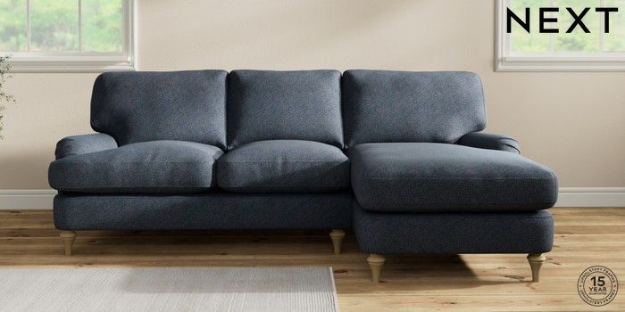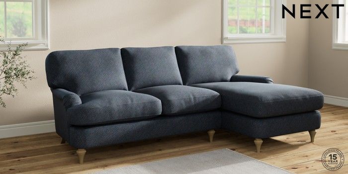 7.2.10 Sadie Deep Relaxed Sit Medium Sofa Chaise - Right Hand Tweedy Chenille Navy Blue High Slim Turned - Light | Made Click here to use our website with more accessibility support, for example screen readers
