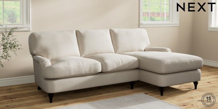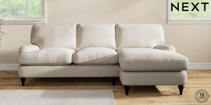 7.2.10 Sadie Deep Relaxed Sit Medium Sofa Chaise - Right Hand Tweedy Chenille Oyster High Slim Turned - Dark | Made Click here to use our website with more accessibility support, for example screen readers
