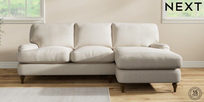 7.2.10 Sadie Deep Relaxed Sit Medium Sofa Chaise - Right Hand Tweedy Chenille Oyster High Slim Turned - Mid | Made Click here to use our website with more accessibility support, for example screen readers