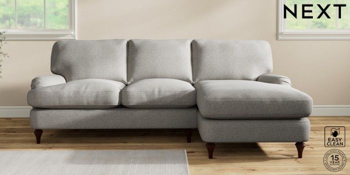 7.2.10 Sadie Deep Relaxed Sit Medium Sofa Chaise - Right Hand Woven Chenille Easy Clean Light Grey High Slim Turned - Dark Brown | Made Click here to use our website with more accessibility support, for example screen readers