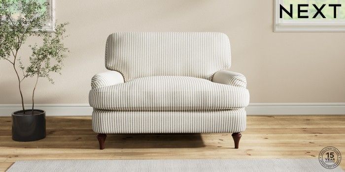 7.2.10 Sadie Deep Relaxed Sit Snuggle Chenille Stripe Moss Green High Slim Turned - Dark Brown | Made Click here to use our website with more accessibility support, for example screen readers