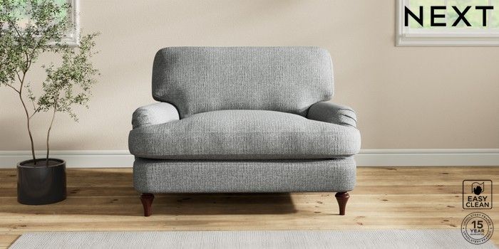 7.2.10 Sadie Deep Relaxed Sit Snuggle Chunky Boucle Easy Clean Mid Grey High Slim Turned - Dark Brown | Made Click here to use our website with more accessibility support, for example screen readers