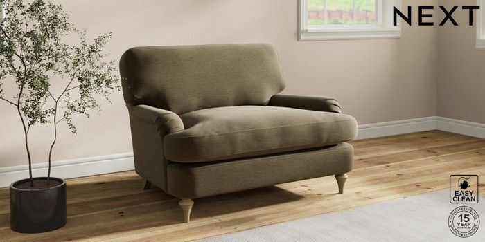 7.2.10 Sadie Deep Relaxed Sit Snuggle Fine Chenille Easy Clean Dark Moss Green High Slim Turned - Light | Made Click here to use our website with more accessibility support, for example screen readers