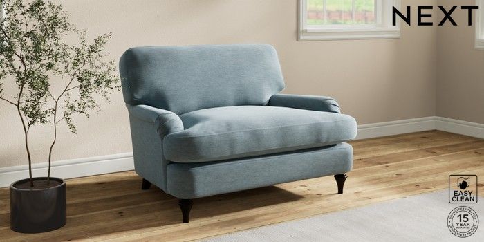 7.2.10 Sadie Deep Relaxed Sit Snuggle Fine Chenille Easy Clean Mid Blue High Slim Turned - Dark | Made Click here to use our website with more accessibility support, for example screen readers