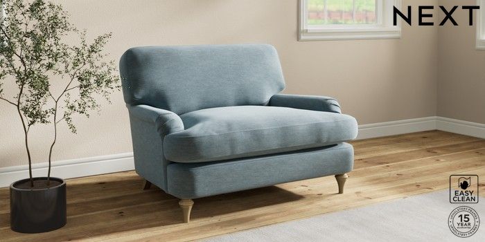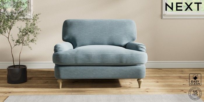 7.2.10 Sadie Deep Relaxed Sit Snuggle Fine Chenille Easy Clean Mid Blue High Slim Turned - Light | Made Click here to use our website with more accessibility support, for example screen readers