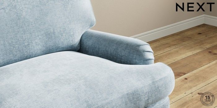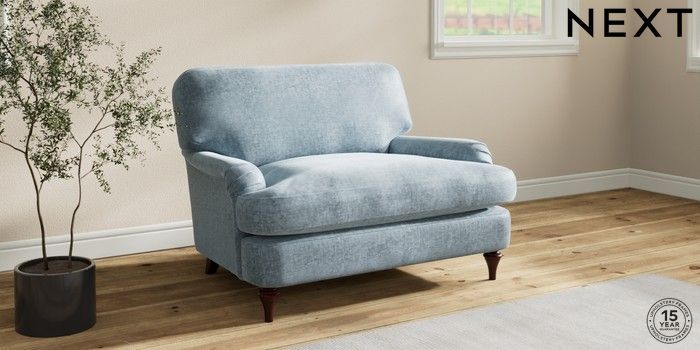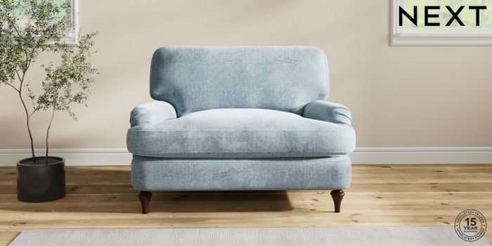 7.2.10 Sadie Deep Relaxed Sit Snuggle Plush Chenille Light Blue High Slim Turned - Dark Brown | Made Click here to use our website with more accessibility support, for example screen readers