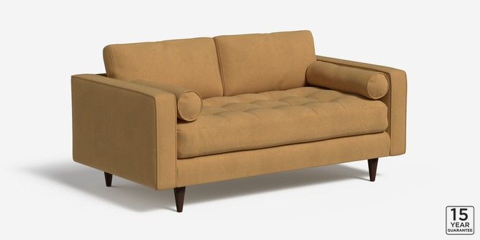 6.12.1 Scott by Made 3 Seater Small Sofa Matt Velvet Easy Clean Caramel Natural Tapered - Walnut | Made Click here to use our website with more accessibility support, for example screen readers