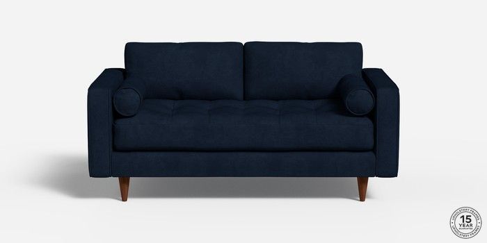 6.12.1 Scott by Made 3 Seater Small Sofa Matt Velvet Easy Clean Dark Navy Blue Tapered - Walnut | Made Click here to use our website with more accessibility support, for example screen readers