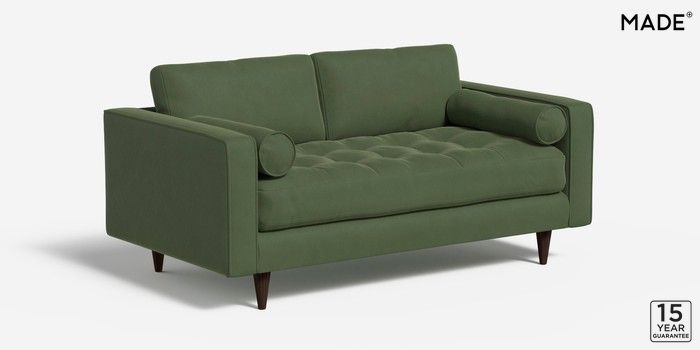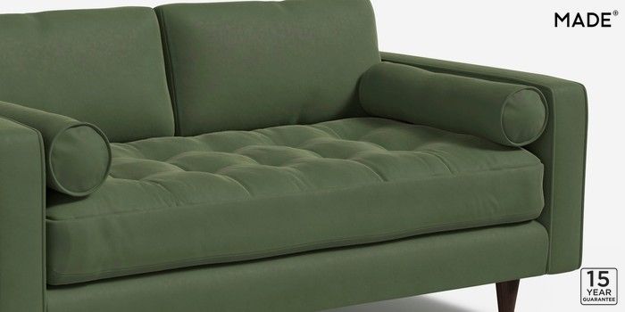 6.12.1 Scott by Made 3 Seater Small Sofa Matt Velvet Easy Clean Grass Green Tapered - Walnut | Made Click here to use our website with more accessibility support, for example screen readers