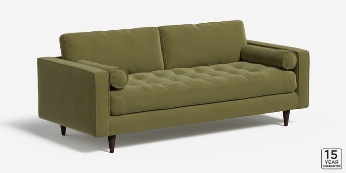 6.12.1 Scott by Made 4 Seater Sofa Matt Velvet Easy Clean Fern Green Tapered - Walnut | Made Click here to use our website with more accessibility support, for example screen readers