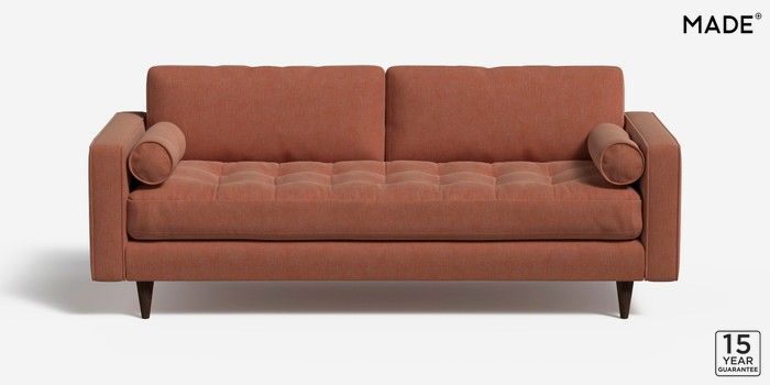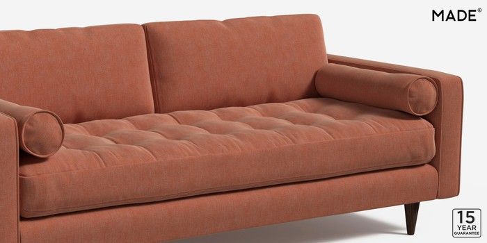 6.12.1 Scott by Made 4 Seater Sofa Soft Chenille Easy Clean Paprika Orange Tapered - Walnut | Made Click here to use our website with more accessibility support, for example screen readers