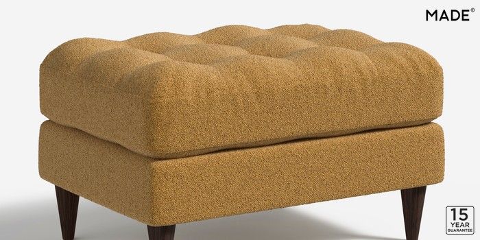 6.12.1 Scott by Made Footstool Soft Touch Boucle Ochre Yellow Tapered - Walnut | Made Click here to use our website with more accessibility support, for example screen readers