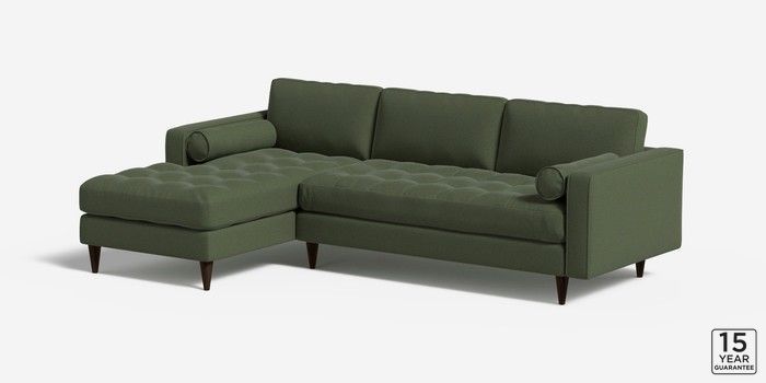 6.12.1 Scott by Made Medium Sofa Chaise - Left Hand Made Weave Dark Moss Green Tapered - Walnut | Made Click here to use our website with more accessibility support, for example screen readers
