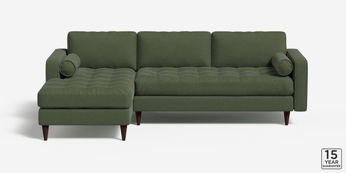 7.0.3 Scott by Made Medium Sofa Chaise - Left Hand Made Weave Dark Moss Green Tapered - Walnut | Made Click here to use our website with more accessibility support, for example screen readers