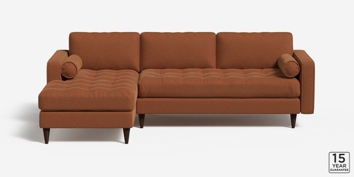 7.0.3 Scott by Made Medium Sofa Chaise - Left Hand Made Weave Dark Terracotta Orange Tapered - Walnut | Made Click here to use our website with more accessibility support, for example screen readers