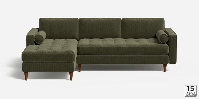 7.2.4 Scott by Made Medium Sofa Chaise - Left Hand Matt Corduroy Fennel Green Tapered - Walnut | Made Click here to use our website with more accessibility support, for example screen readers