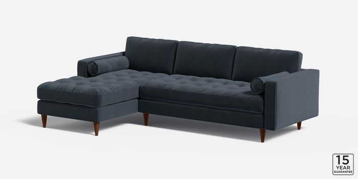 6.12.1 Scott by Made Medium Sofa Chaise - Left Hand Matt Corduroy Midnight Blue Tapered - Walnut | Made Click here to use our website with more accessibility support, for example screen readers
