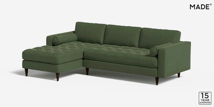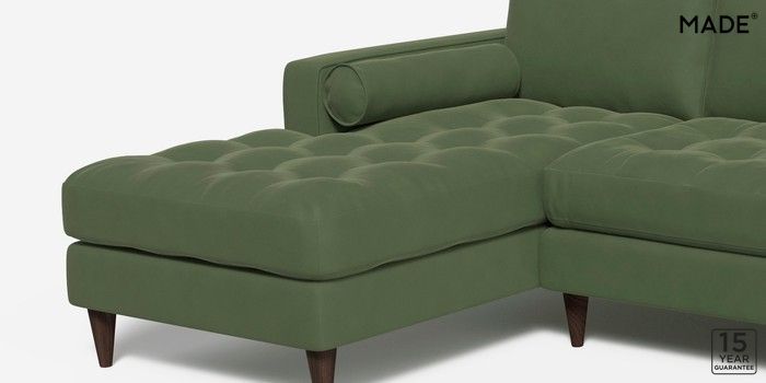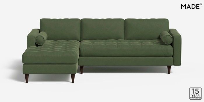 6.12.1 Scott by Made Medium Sofa Chaise - Left Hand Matt Velvet Easy Clean Grass Green Tapered - Walnut | Made Click here to use our website with more accessibility support, for example screen readers