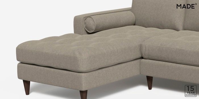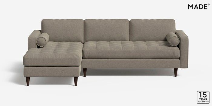 6.12.1 Scott by Made Medium Sofa Chaise - Left Hand Soft Chenille Easy Clean Pebble Grey Tapered - Walnut | Made Click here to use our website with more accessibility support, for example screen readers