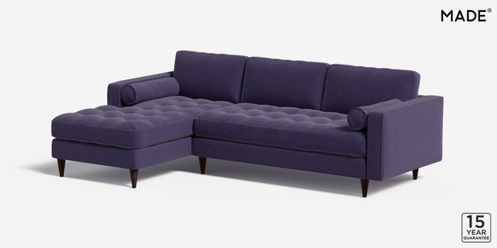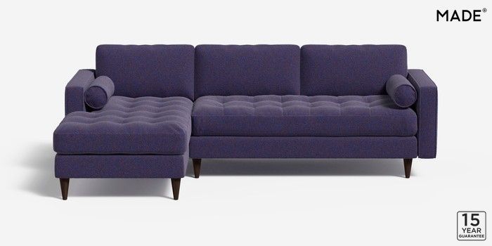 6.12.1 Scott by Made Medium Sofa Chaise - Left Hand Soft Touch Boucle Cobalt Blue Tapered - Walnut | Made Click here to use our website with more accessibility support, for example screen readers