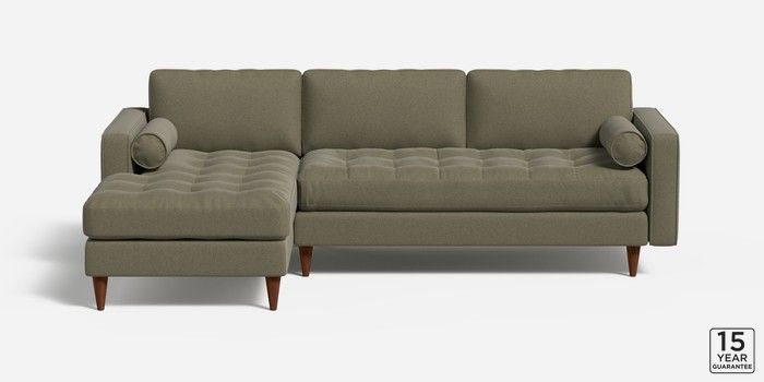 7.0.3 Scott by Made Medium Sofa Chaise - Left Hand Textured Slub Weave Soft Olive Green Tapered - Walnut | Made Click here to use our website with more accessibility support, for example screen readers