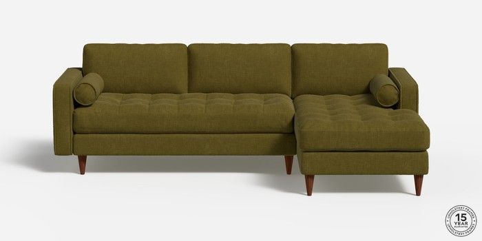 6.12.1 Scott by Made Medium Sofa Chaise - Right Hand Etched Chenille Moss Green Tapered - Walnut | Made Click here to use our website with more accessibility support, for example screen readers