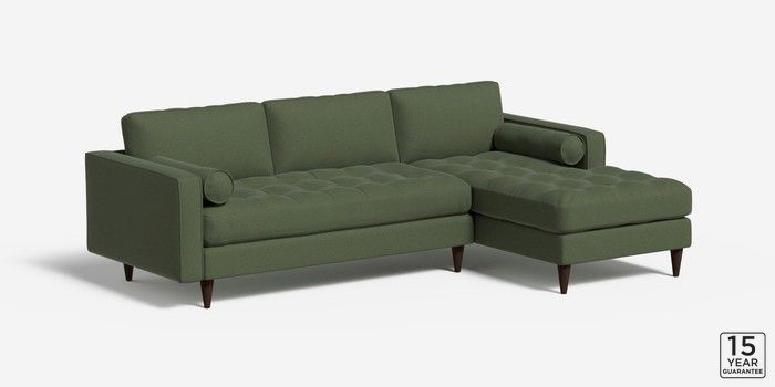 6.12.1 Scott by Made Medium Sofa Chaise - Right Hand Made Weave Dark Moss Green Tapered - Walnut | Made Click here to use our website with more accessibility support, for example screen readers