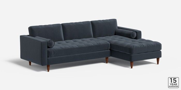 6.12.1 Scott by Made Medium Sofa Chaise - Right Hand Matt Corduroy Midnight Blue Tapered - Walnut | Made Click here to use our website with more accessibility support, for example screen readers