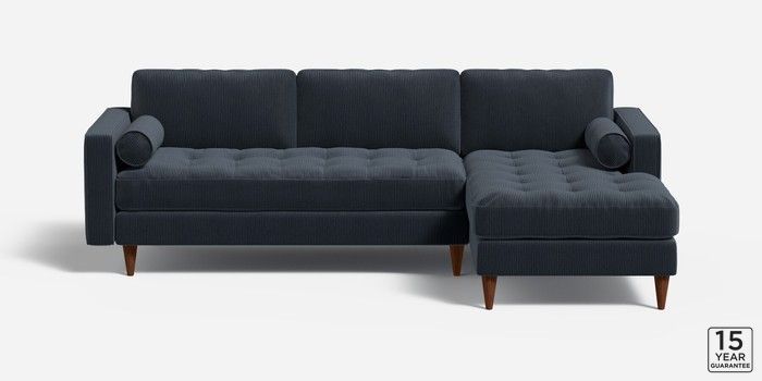 7.2.4 Scott by Made Medium Sofa Chaise - Right Hand Matt Corduroy Midnight Blue Tapered - Walnut | Made Click here to use our website with more accessibility support, for example screen readers