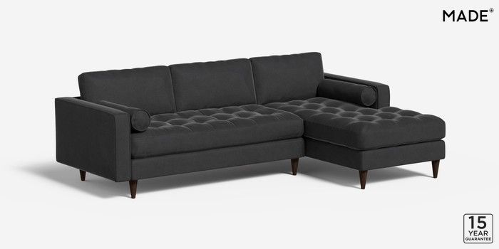 7.0.3 Scott by Made Medium Sofa Chaise - Right Hand Matt Velvet Easy Clean Charcoal Grey Tapered - Walnut | Made Click here to use our website with more accessibility support, for example screen readers