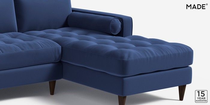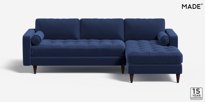 6.12.1 Scott by Made Medium Sofa Chaise - Right Hand Matt Velvet Easy Clean Navy Blue Tapered - Walnut | Made Click here to use our website with more accessibility support, for example screen readers