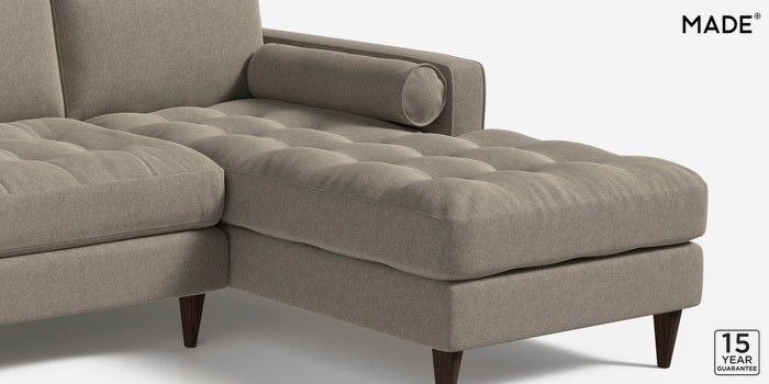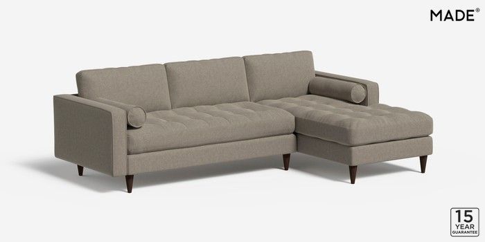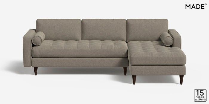 6.12.1 Scott by Made Medium Sofa Chaise - Right Hand Soft Chenille Easy Clean Pebble Grey Tapered - Walnut | Made Click here to use our website with more accessibility support, for example screen readers