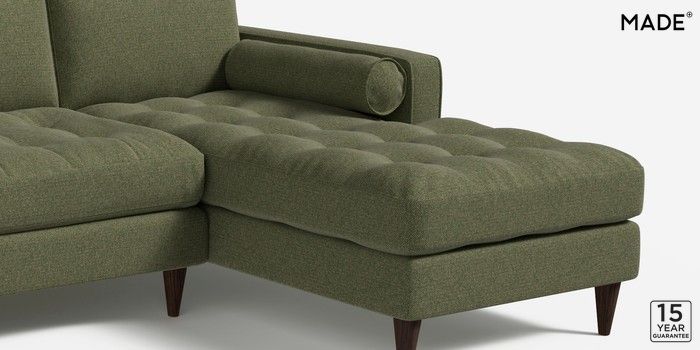 6.12.1 Scott by Made Medium Sofa Chaise - Right Hand Textured Woven Meadow Green Tapered - Walnut | Made Click here to use our website with more accessibility support, for example screen readers