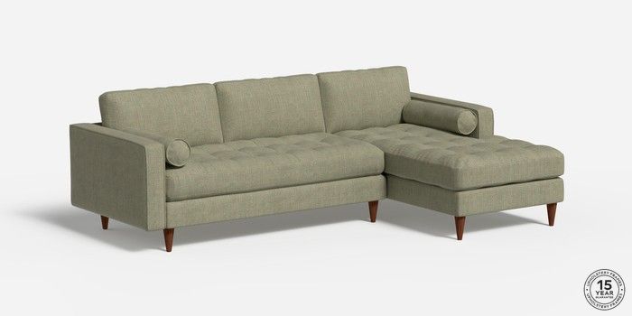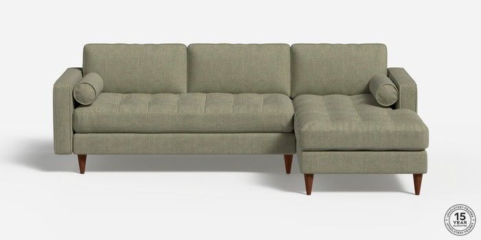 7.2.4 Scott by Made Medium Sofa Chaise - Right Hand Woven Fleck Sage Green Tapered - Walnut | Made Click here to use our website with more accessibility support, for example screen readers