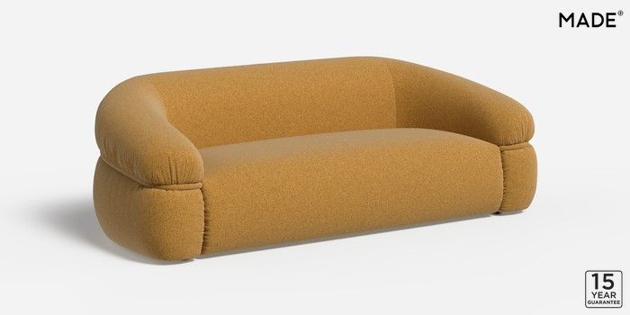 6.12.1 Soma by Made 3 Seater Sofa Soft Touch Boucle Ochre Yellow Glide | Made Click here to use our website with more accessibility support, for example screen readers