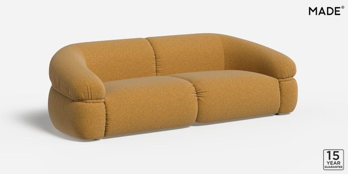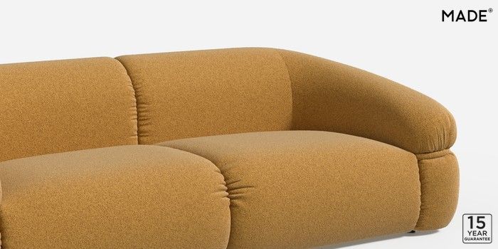 6.12.1 Soma by Made 4 Seater Sofa Soft Touch Boucle Ochre Yellow Glide | Made Click here to use our website with more accessibility support, for example screen readers
