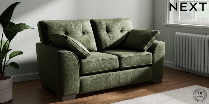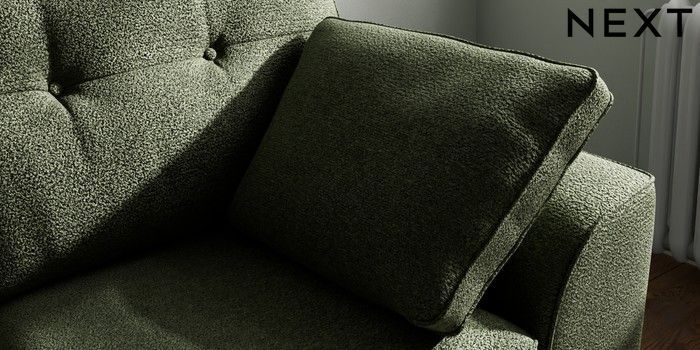 7.2.10 Stamford Buttoned Back 2 Seater Small Sofa Boucle Chenille Dark Moss Green Large Square Angle - Gunmetal | Made Click here to use our website with more accessibility support, for example screen readers