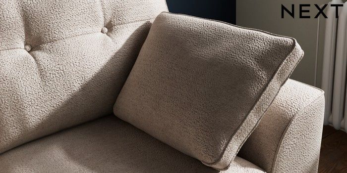 7.2.10 Stamford Buttoned Back 2 Seater Small Sofa Boucle Chenille Light Natural Large Square Angle - Dark | Made Click here to use our website with more accessibility support, for example screen readers