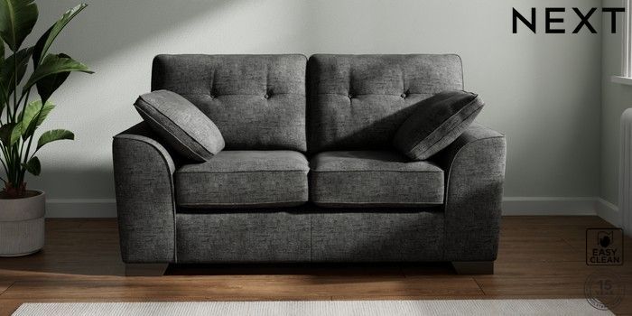 7.2.10 Stamford Buttoned Back 2 Seater Small Sofa Boucle Weave Easy Clean Charcoal Grey Large Square Angle - Gunmetal | Made Click here to use our website with more accessibility support, for example screen readers