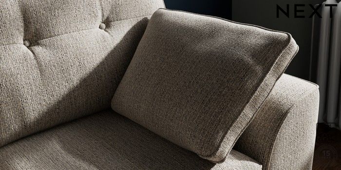 7.2.10 Stamford Buttoned Back 2 Seater Small Sofa Chunky Boucle Easy Clean Dove Large Square Angle - Chrome Metal | Made Click here to use our website with more accessibility support, for example screen readers